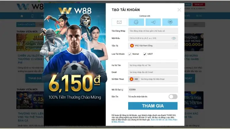 + Bước 1: Truy cập vào w88.melbourne và nhấn vào mục Đăng Ký. Điền đầy đủ thông tin cá nhân theo yêu cầu, đảm bảo chính xác để thuận tiện cho các giao dịch sau này.